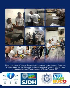 Realização de Cursos Profissionalizantes com Jovens, Adultos e familiares em situação de vulnerabilidade e risco social, das comunidades do Varadouro e V8 em Olinda PE.