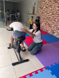 Cada criança e jovem atendida é acompanhada por profissionais de Educação Física, Fisioterapeuta e psicólogo.